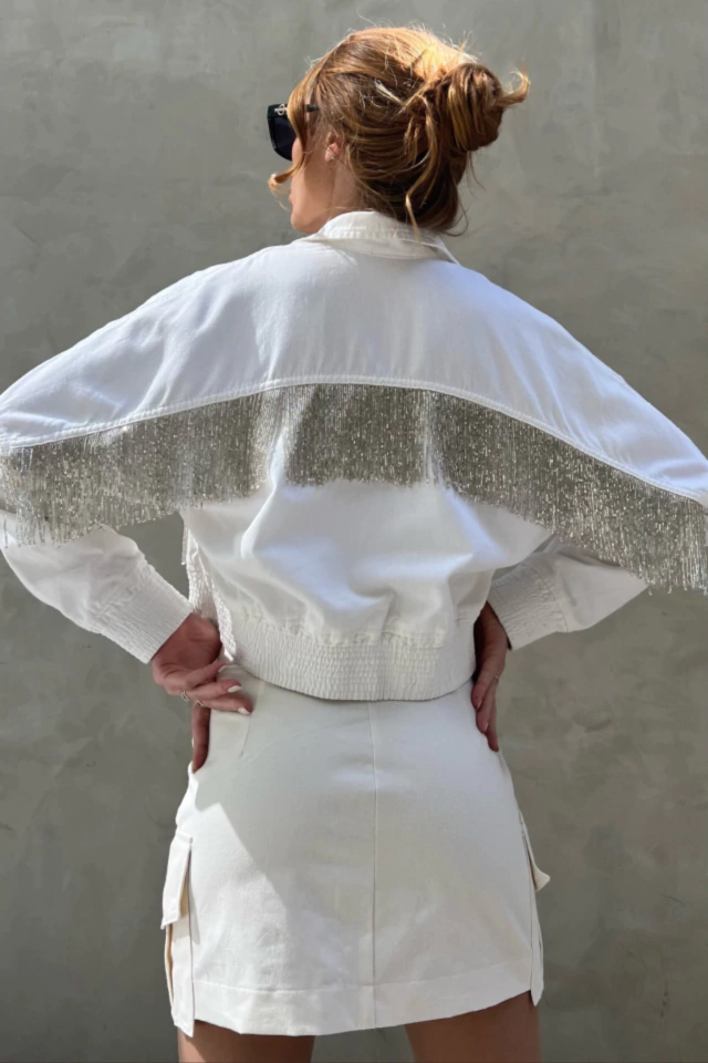 Jaqueta Feminina Off White Bordada Franja