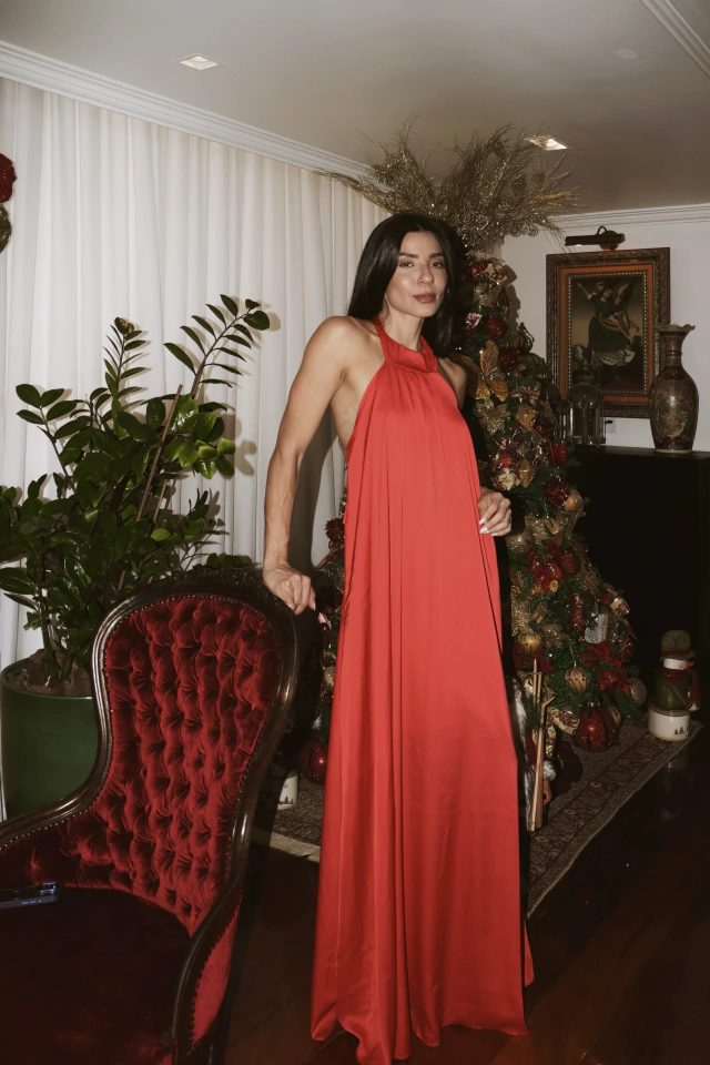 Nosso Vestido ISLA longo também é um dos queridinhos aqui na Elok. Ele vem em seda gloss (trazendo um leve brilho e deixando o vestido ainda mais charmoso) possui forro com o mesmo tecido, frente única com golinha, amarração no pescoço e elástico nas costas. Super fluido, com bastante movimento, impossível não ter essa peça chave no seu guarda roupas. Pode ser usado em várias ocasiões. É aquele vestido pra vida sabe? que trás poder e leveza. Vestido em tamanho único. A cor dele é um tom de vermelho mais vivo e aberto.