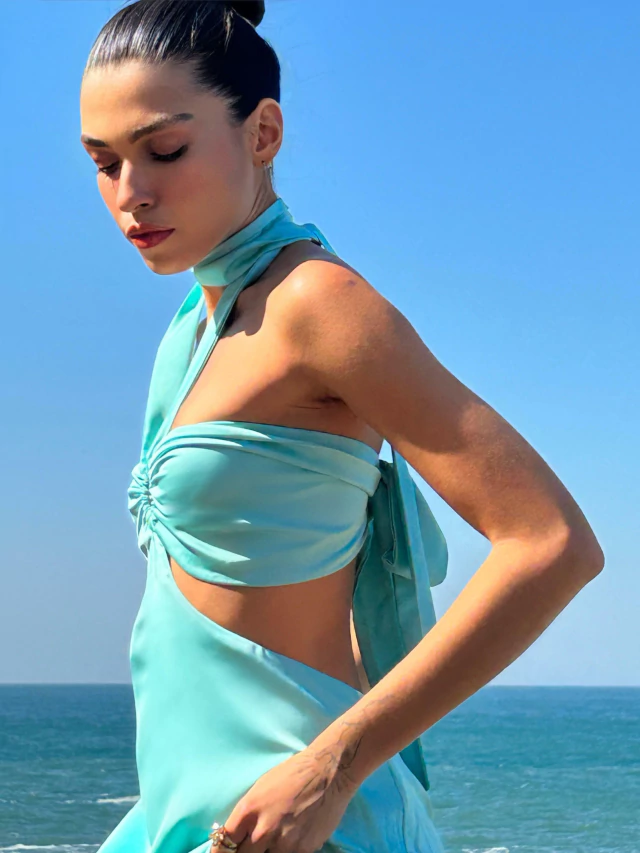 A modelagem mais charmosa desse verão chegou para te deixar ainda mais impecável! Esse vestido é aquele que para tudo sabe?! Vem em seda gloss nesse tom de Verde Água que é encantador! Possui uma argola e amarrações no pescoço (gostamos de amarrar como gargantilha tambem, fica a sua escolha) e nas costas. Possui também zíper invisível atrás pra fechar na parte da cintura e o leve toque de brilho? Perfeito né?! O vestido mais desejado do momento!